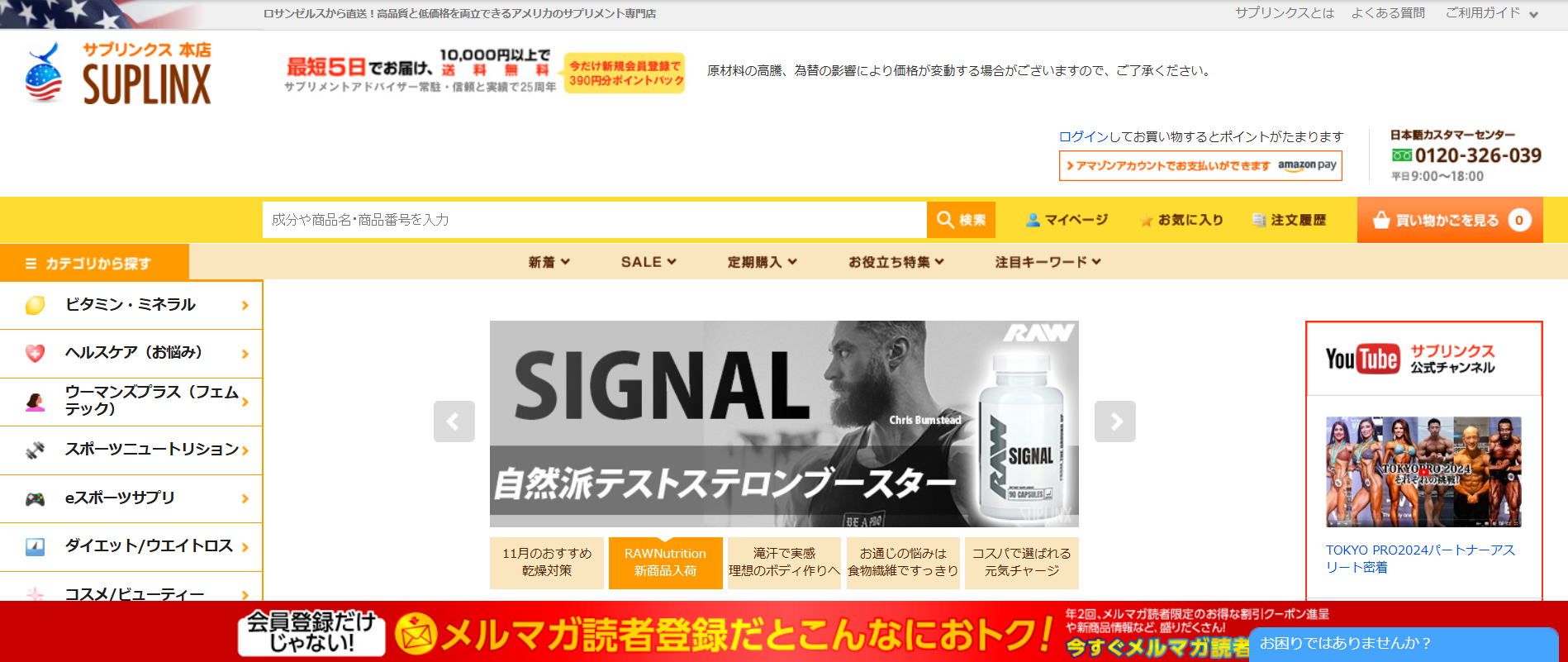 サプリンクスは、アメリカ製のサプリメントとコスメを専門に取り扱う通販サイトです。ロサンゼルスに拠点を置き、日本へ直接発送することで、高品質なアメリカ製サプリメントを比較的安価に提供しています。
