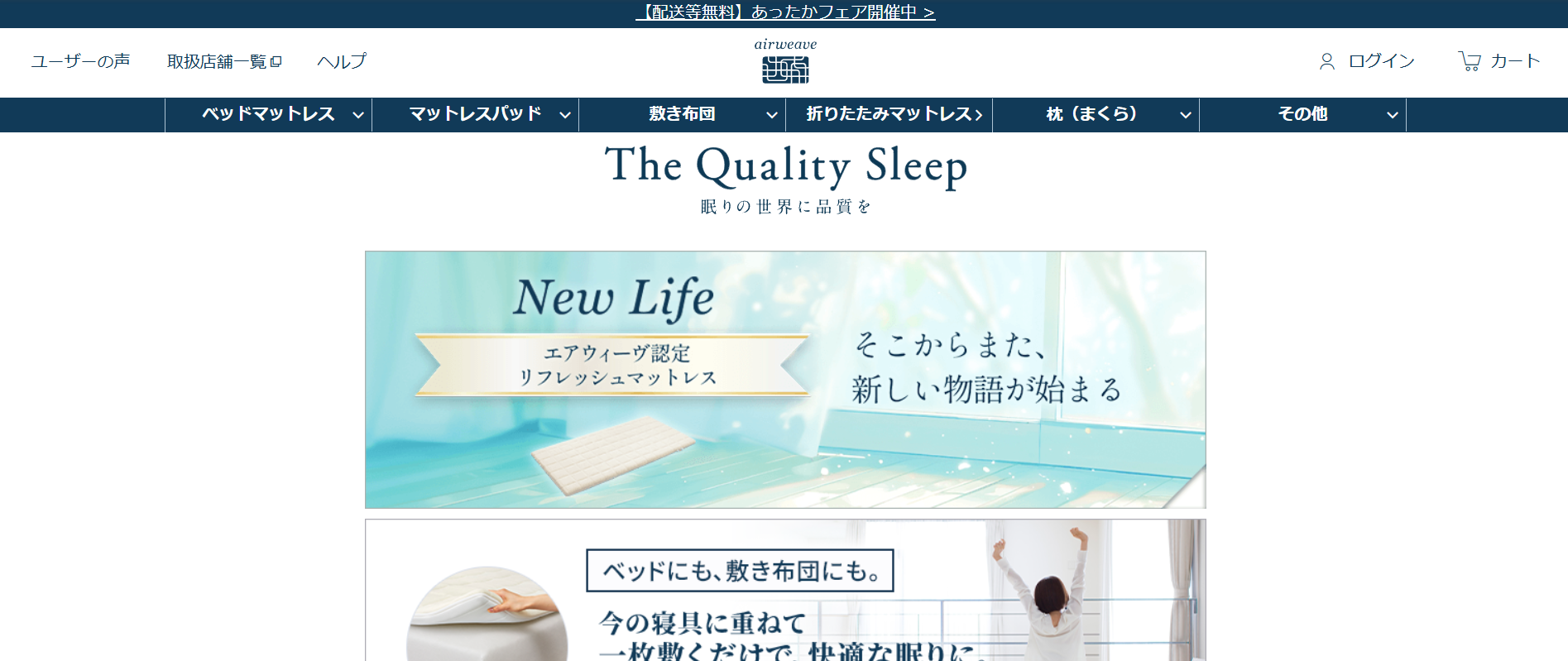 エアウィーヴは、**「The Quality Sleep」**をスローガンに掲げる、日本の総合寝具メーカーです。特に、高反発のマットレスパッドとして広く知られています。