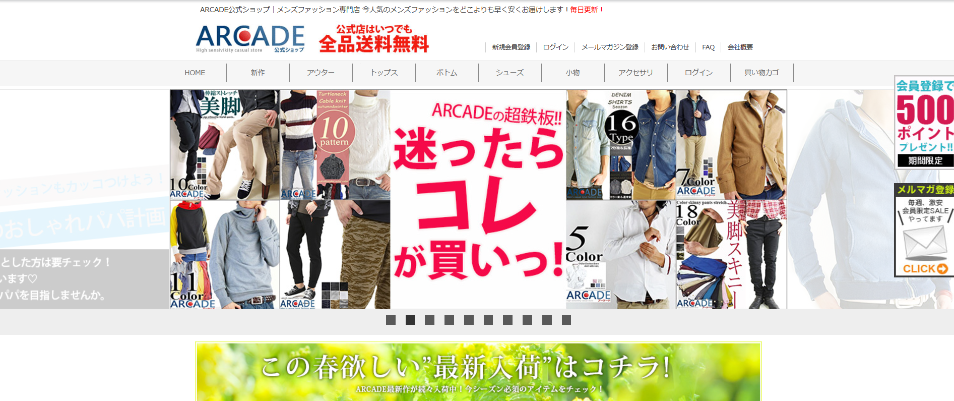 ARCADE公式通販は、メンズファッションを中心としたアイテムを豊富に取り揃えたオンラインストアです。毎日新商品が続々登場し、タイムセールも頻繁に開催されるなど、常に最新のトレンドを取り入れた商品が購入できます。