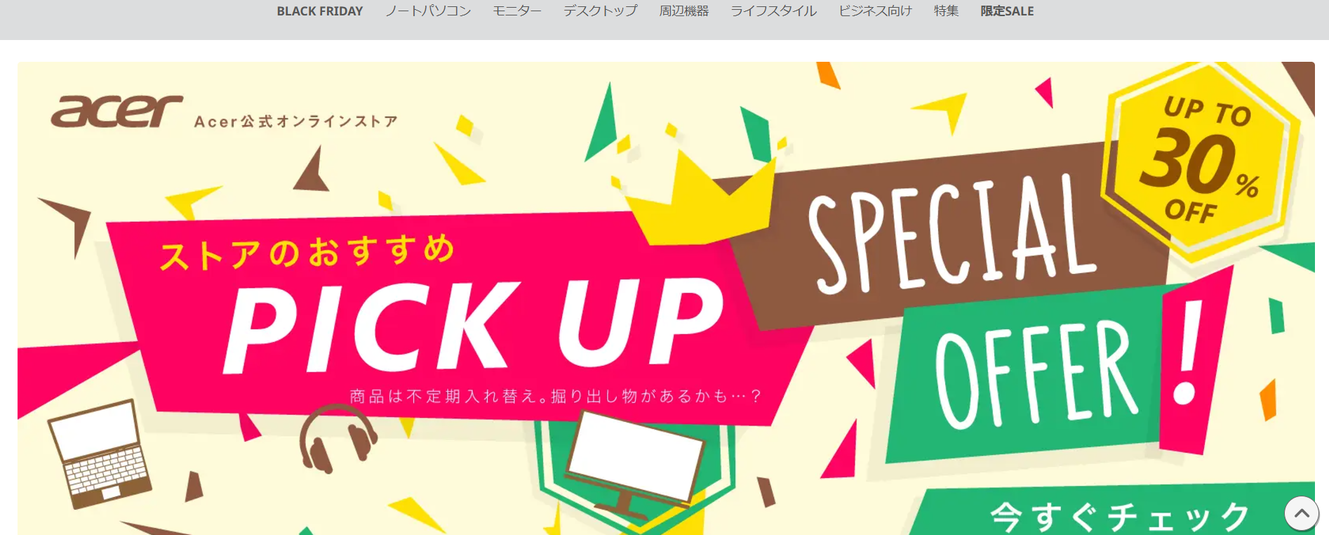 Acer公式オンラインストアはAcerのメーカー公式オンラインストアです。