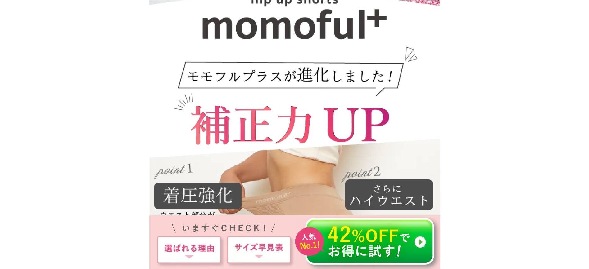 「モモフルプラス ヒップアップショーツと補正下着」は、お腹、お尻、背中、骨盤の