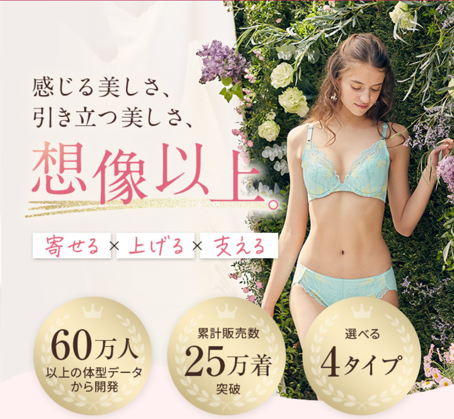 補整下着を中心にランジェリーや着圧タイツなどのインナーウェア、化粧品やサプリなど健康と美に関する商品を通販にて販売