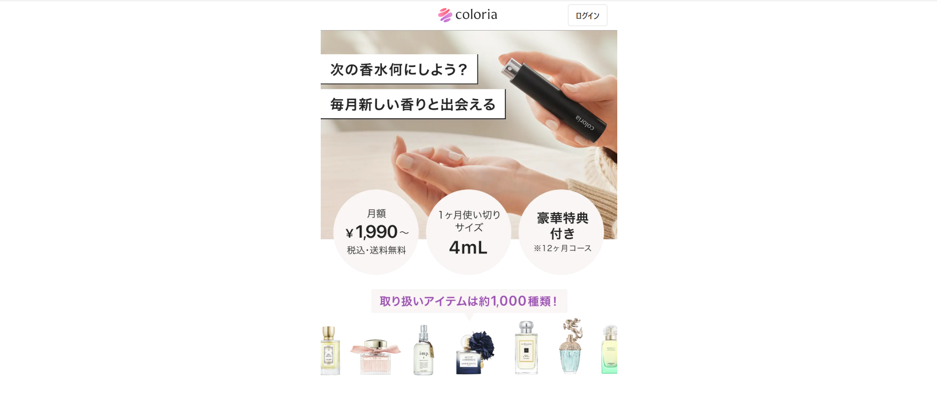 1.約1,000種類の高級ブランド香水やルームフレグランス、バスグッズ、ボディケアなど香り商品を毎月試せるサービス。(今後どんどん取り扱いは増える予定)