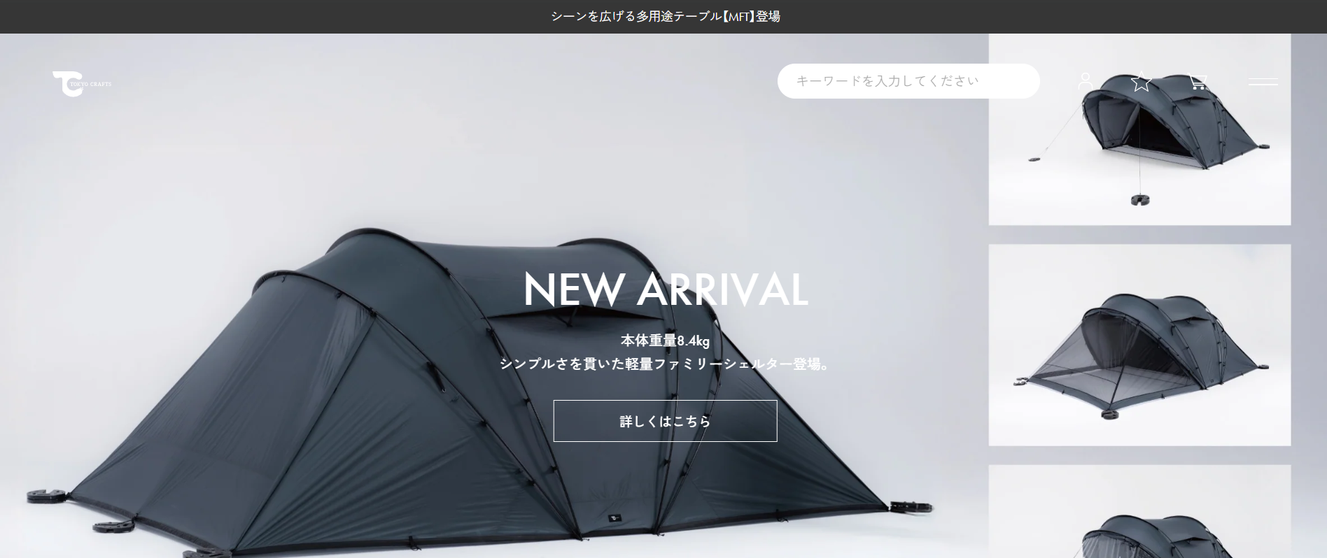 - テント、タープ、焚き火台、テーブル、コット、シェラカップなど、幅広いキャンプ用品を取り扱っています。