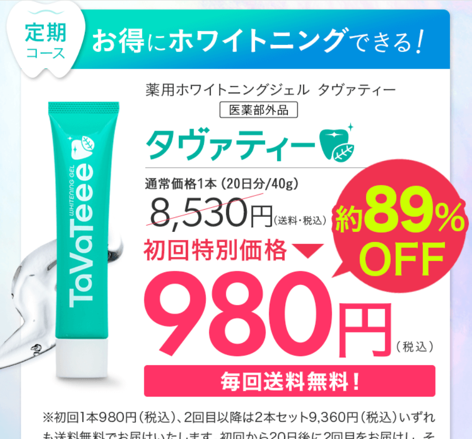 ▼1本で輝く白い歯に!ホワイトニング歯磨きジェルTaVaTeee[タヴァティー]