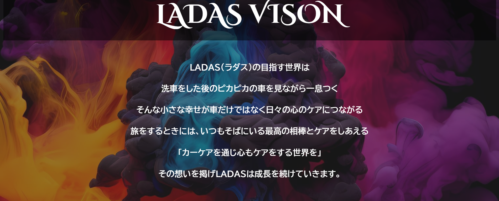 LADAS(ラダス)は、日本のカーケア用品ブランドで、洗車を愛するマニアから初心者まで、幅広いユーザーが「これがいい」と思えるような製品を提供することを目指しています。彼らの掲げるミッションは、「洗車をする方へピカピカになった車を見た時の小さな幸せを量産し、愛車を持つ方へ『これがいい』と言われる満足クオリティの製品をお届けする」ことです。