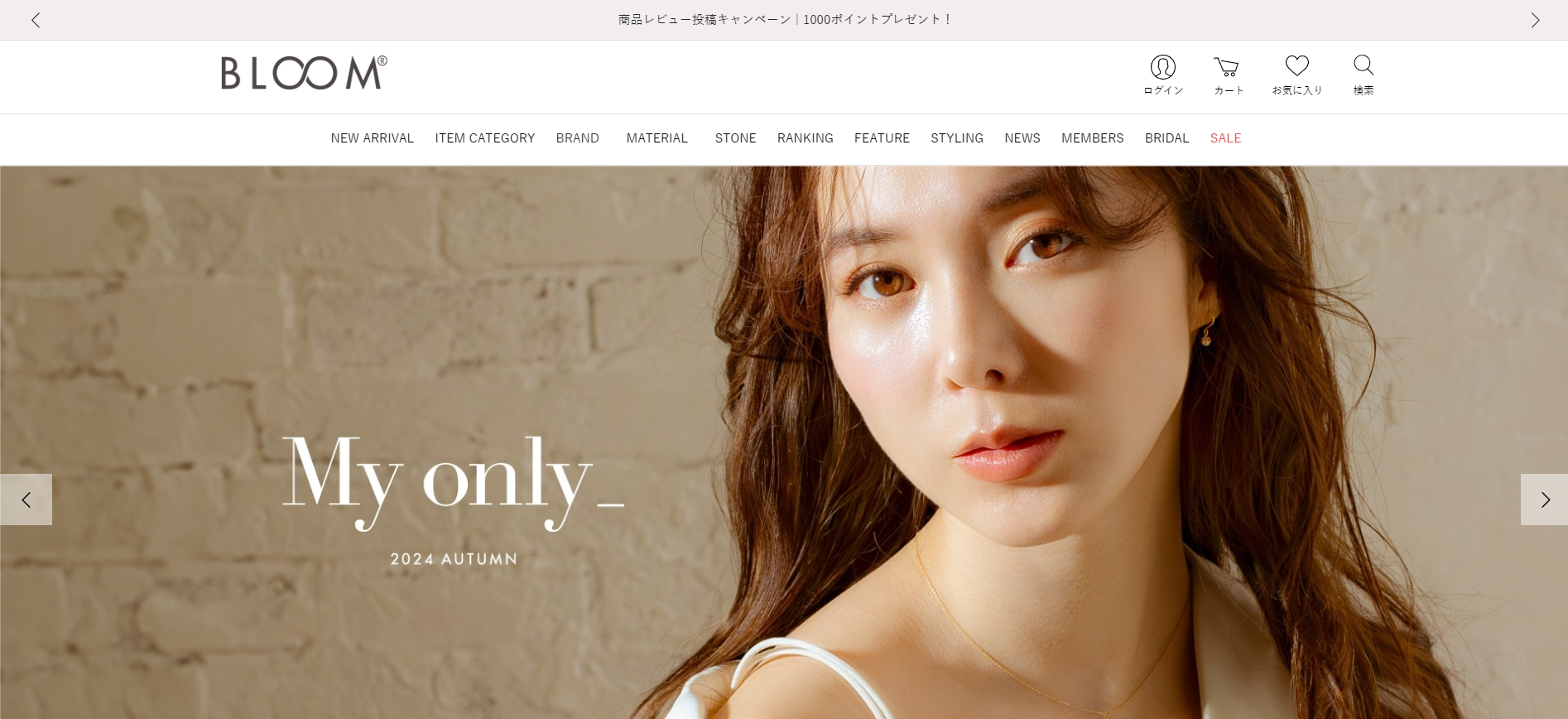 ・BLOOM ONLINE STOREは、全国に約480店舗のネットワークを持つ、日本最大のジュエリーチェーンであるエステールホールディングスグループ直営の公式オンラインショッピングサイトです。