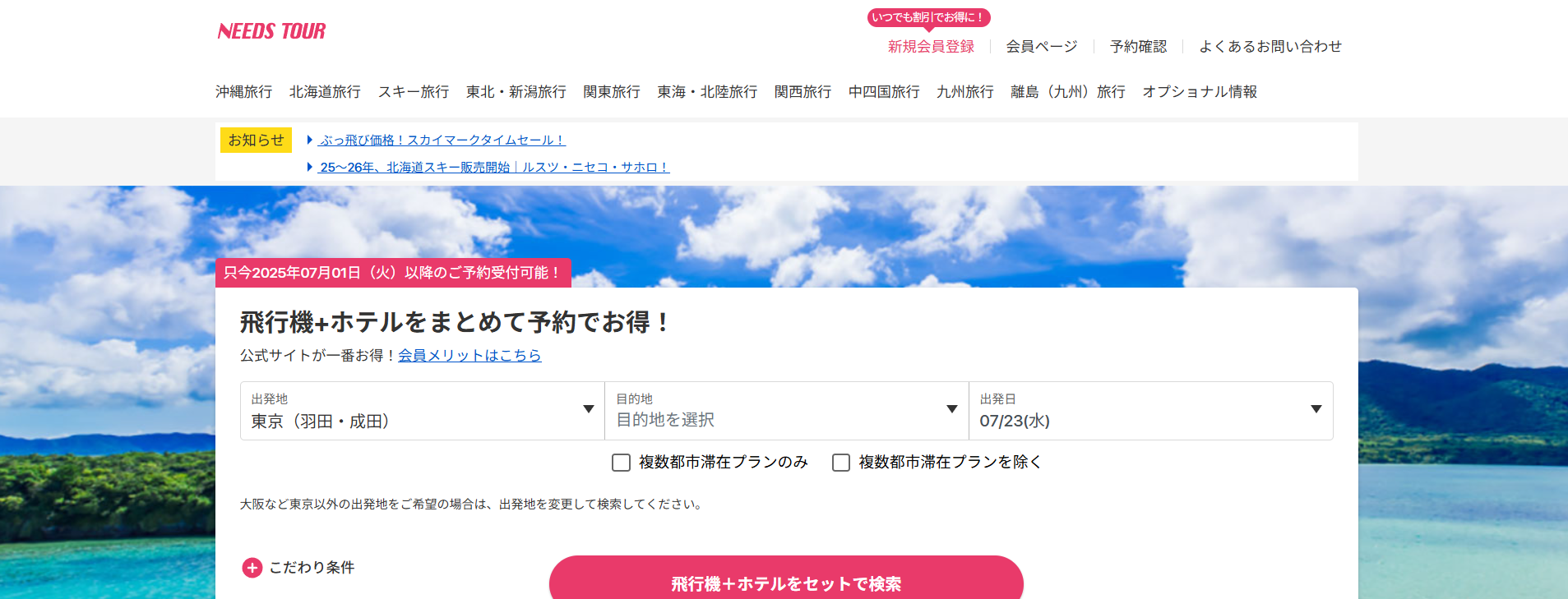 東京発・大阪発・全国発の沖縄・北海道旅行ほか全国発着の国内旅行を販売する旅行サイトです。