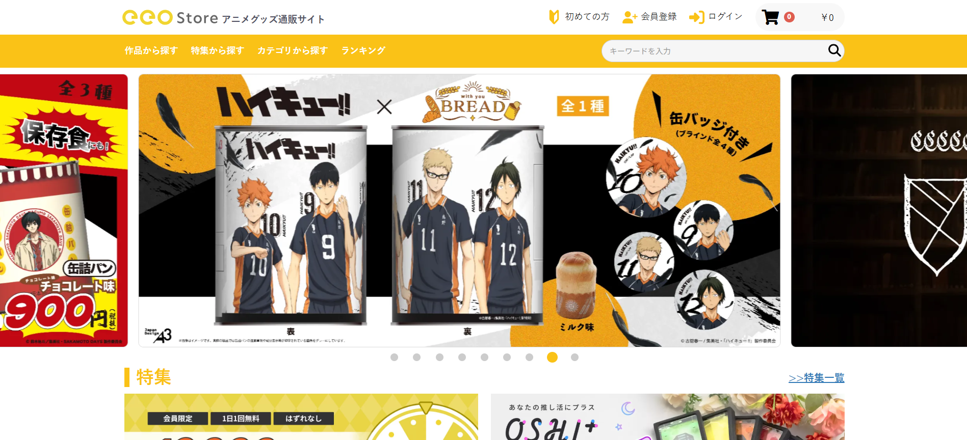 eeo Store(イーオストア)は、アニメ、マンガ、ゲームなどの公式グッズやコラボグッズを専門に取り扱うECサイトです。株式会社A3が運営しており、オンラインストアだけでなく、実店舗やコラボカフェも展開しています。