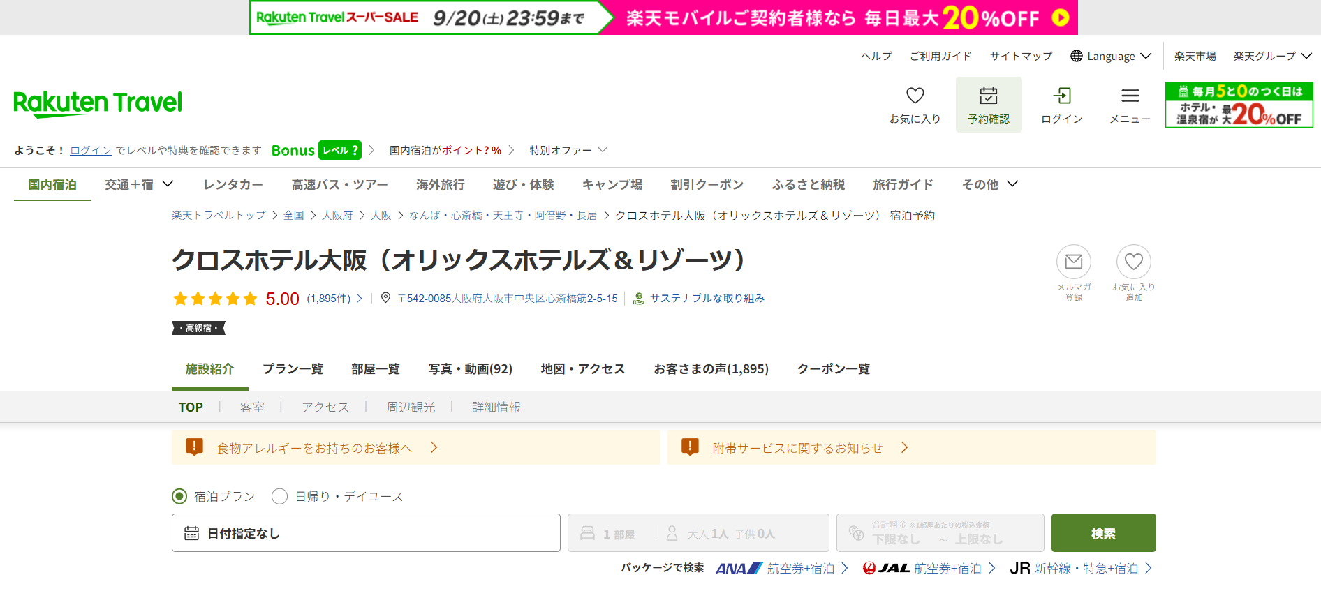 | 商品名 | クロスホテル大阪 |