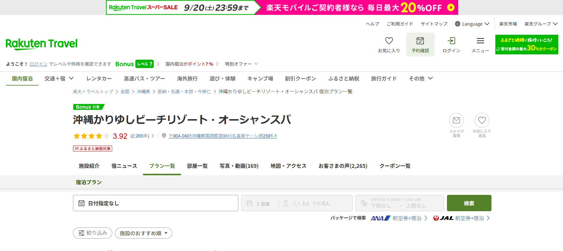 | 商品名 | 沖縄かりゆしビーチリゾート・オーシャンスパ |