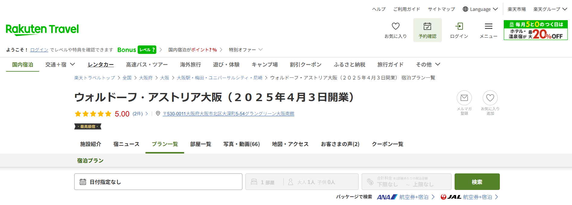 | 商品名 | ウォルドーフ・アストリア大阪 |