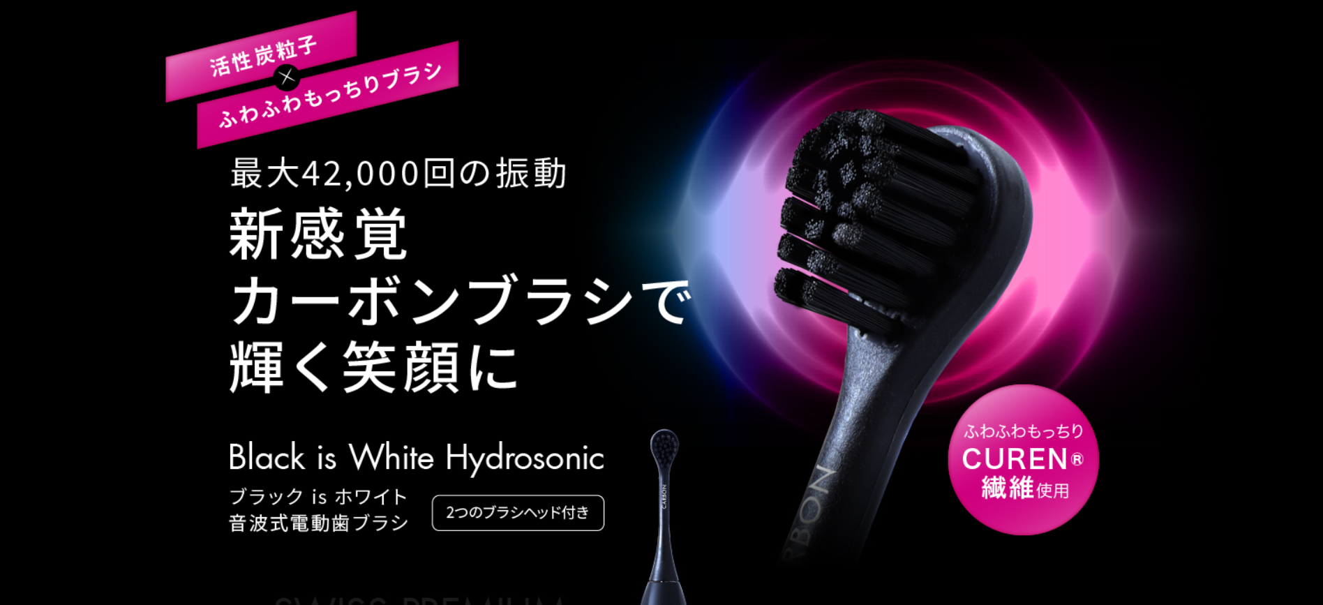 やわらかなCURENR繊維と細かなカーボンパウダーのブラシにより