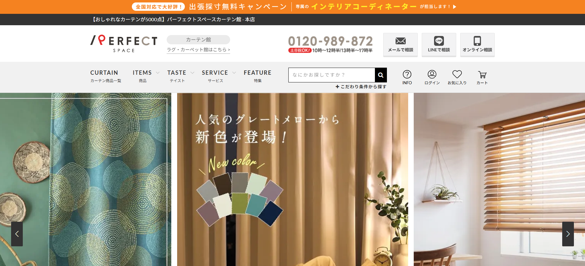 パーフェクトスペース カーテン館の公式サイトでは、商品の詳細やお客様の声などを確認できます。